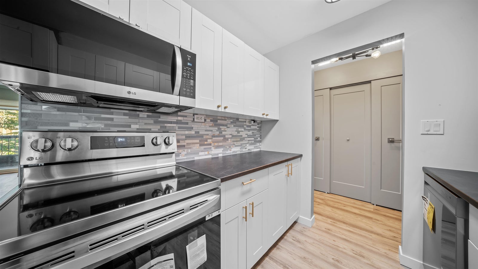 Welcome to this bright and modern northeast-facing home, perfectly situated just a short walk from Gateway SkyTrain Station and local shops. This 2-bedroom, 1-bathroom residence has been thoughtfully updated with sleek tile work, contemporary fixtures, that add style and functionality and new appliances (with a transferable warranty). Enjoy a spacious fully renovated bathroom featuring heated flooring, a fresh modern vanity, elegant backsplash, and a brand-new tub & toilet— all designed with sophistication and the feel of a hotel spa. This well-maintained building has also seen significant upgrades, including plumbing improvements, a new roof (2017), and new boilers (2023) — offering peace of mind and long-term value. This home checks all the boxes for comfort, style, and convenience!