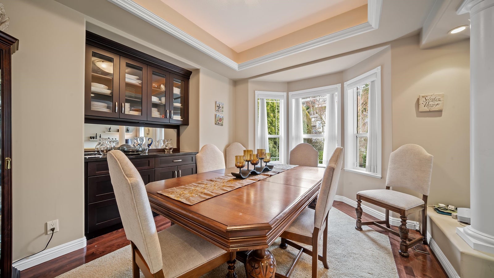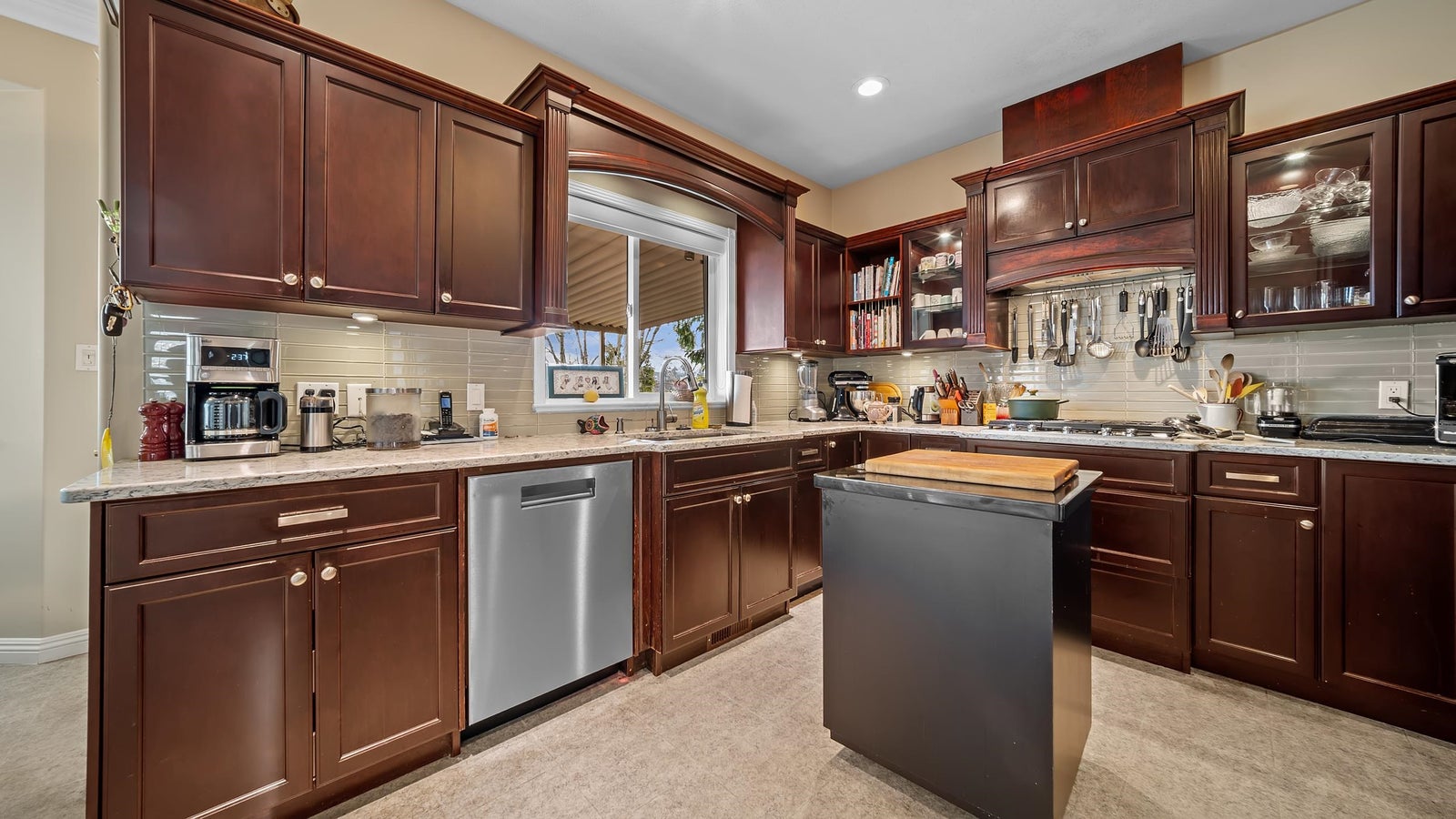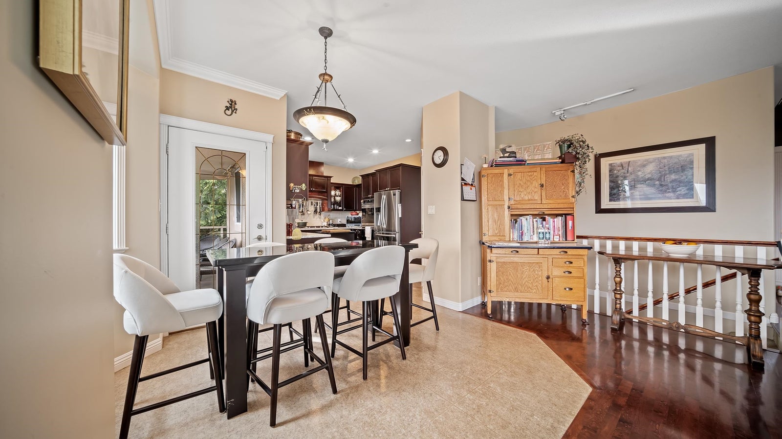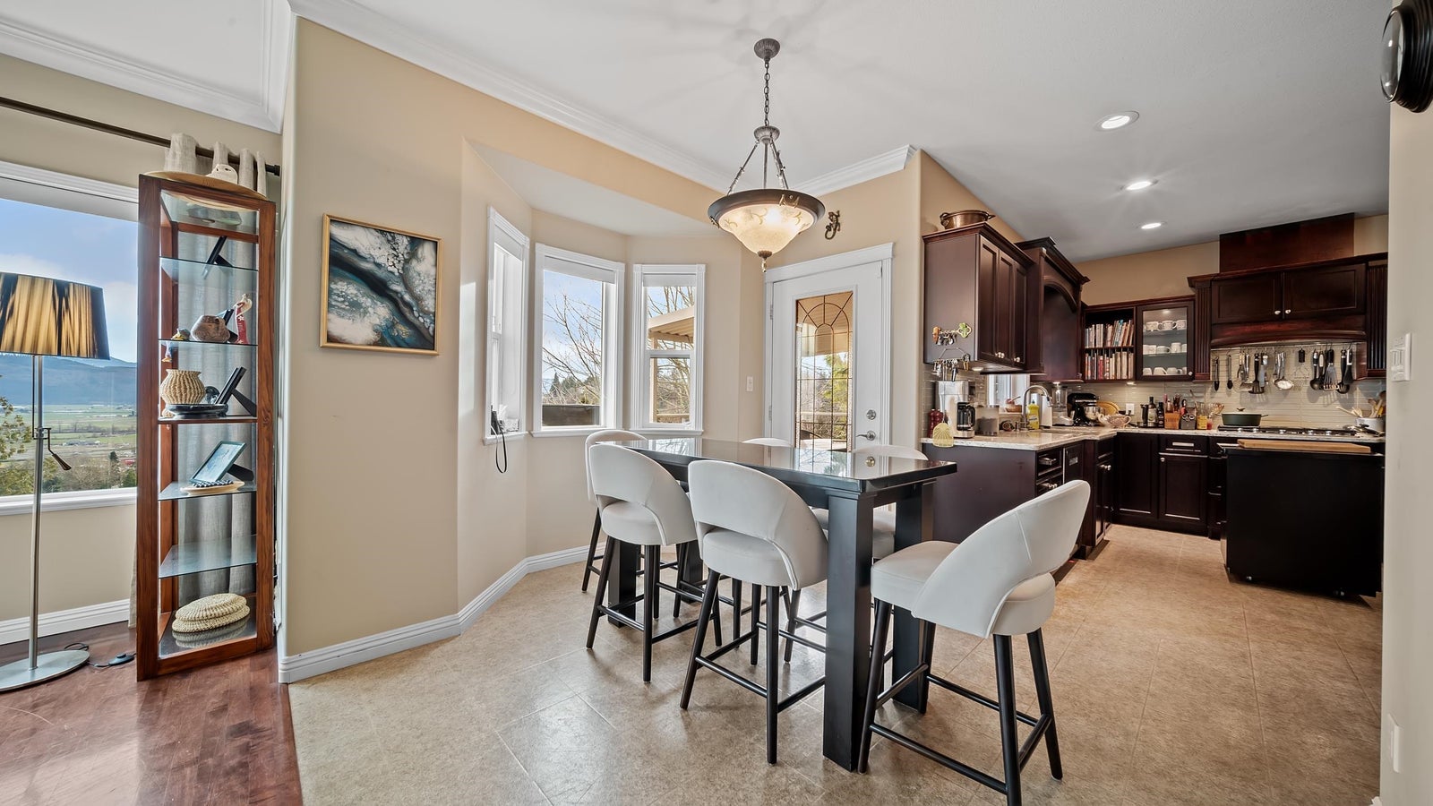 Stunning panoramic Mt. Baker views define this custom 6-bedroom rancher with full basement, ideally located on a 1/3-acre lot in desirable East Abbotsford. Nearly every window captures breathtaking scenery. The home features a cherry wood kitchen with pantry and double wall ovens, dark maple hardwood flooring, crown mouldings, decorative columns, and 9-foot ceilings throughout. The fully finished walk out basement offers a rec room with full bar and pool table area, plus separate entry with suite potential. The primary bedroom on the main floor features ensuite including a custom double vanity with dressing area. Plenty of recent updates—roof, furnace, and air conditioning—provide peace of mind. An exceptional view property offering space, quality, and lifestyle. Call today!