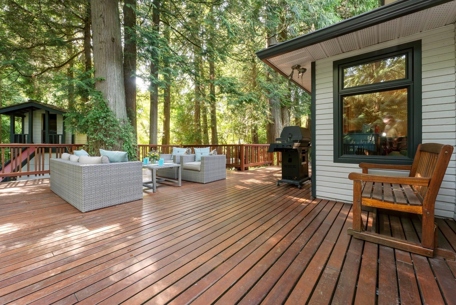 Tucked away on a quiet cul-de-sac in the desirable Amble Green neighbourhood, this beautifully maintained home offers exceptional privacy, backing onto a tranquil greenbelt. Surrounded by nature, the setting is serene and peaceful. Featuring 3 bedrooms, 3 full bathrooms, and a versatile games room, the home is ideal for comfortable family living and entertaining. Thoughtful upgrades include new windows, fresh exterior paint, and a durable old-growth cedar roof. A 75-foot reinforced cobblestone driveway enhances both curb appeal and functionality. Step outside to the expansive cedar deck with natural gas hookup, overlooking the lush, private yard. Custom stained-glass fir doors and established perennial gardens add warmth and timeless charm. A rare opportunity!