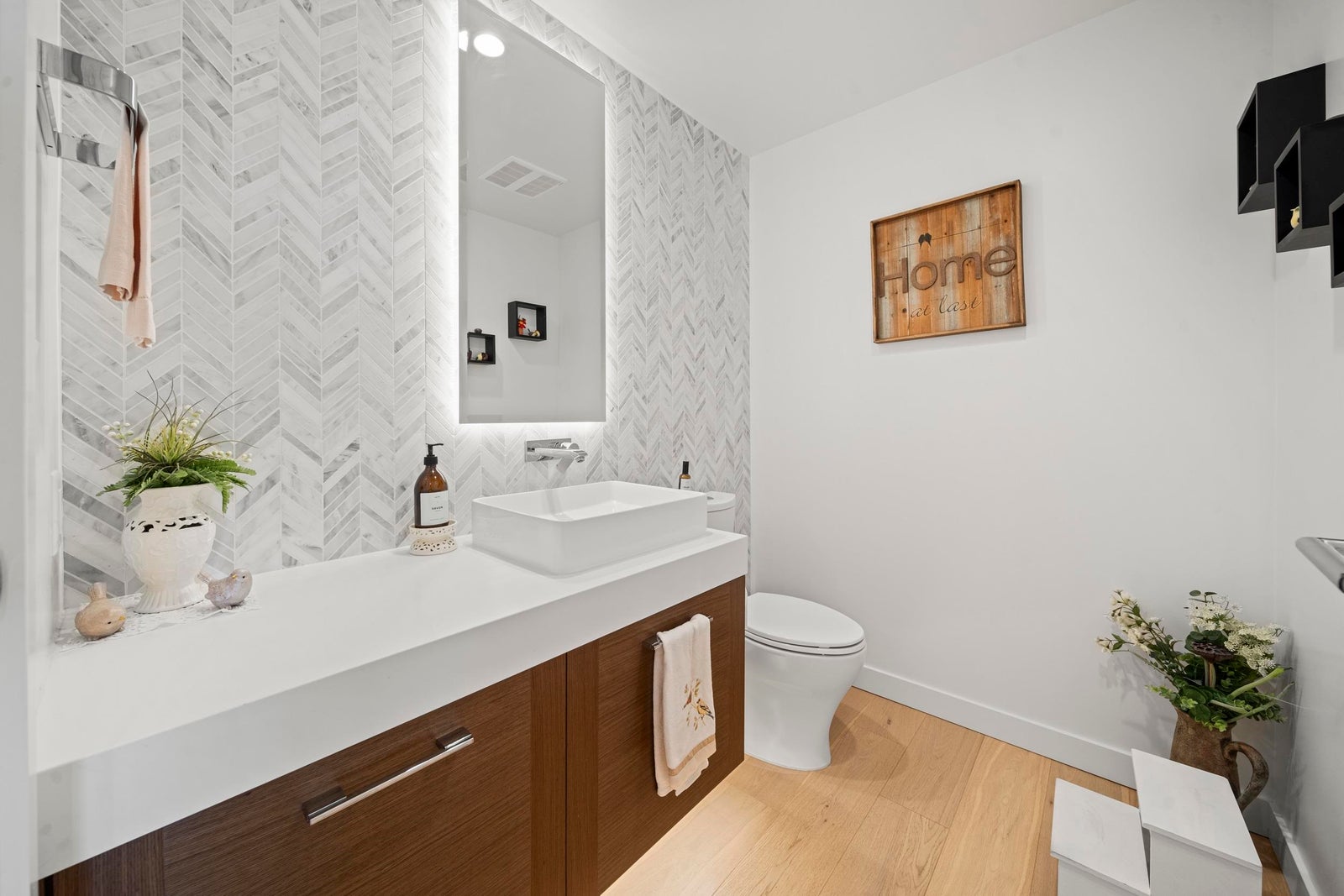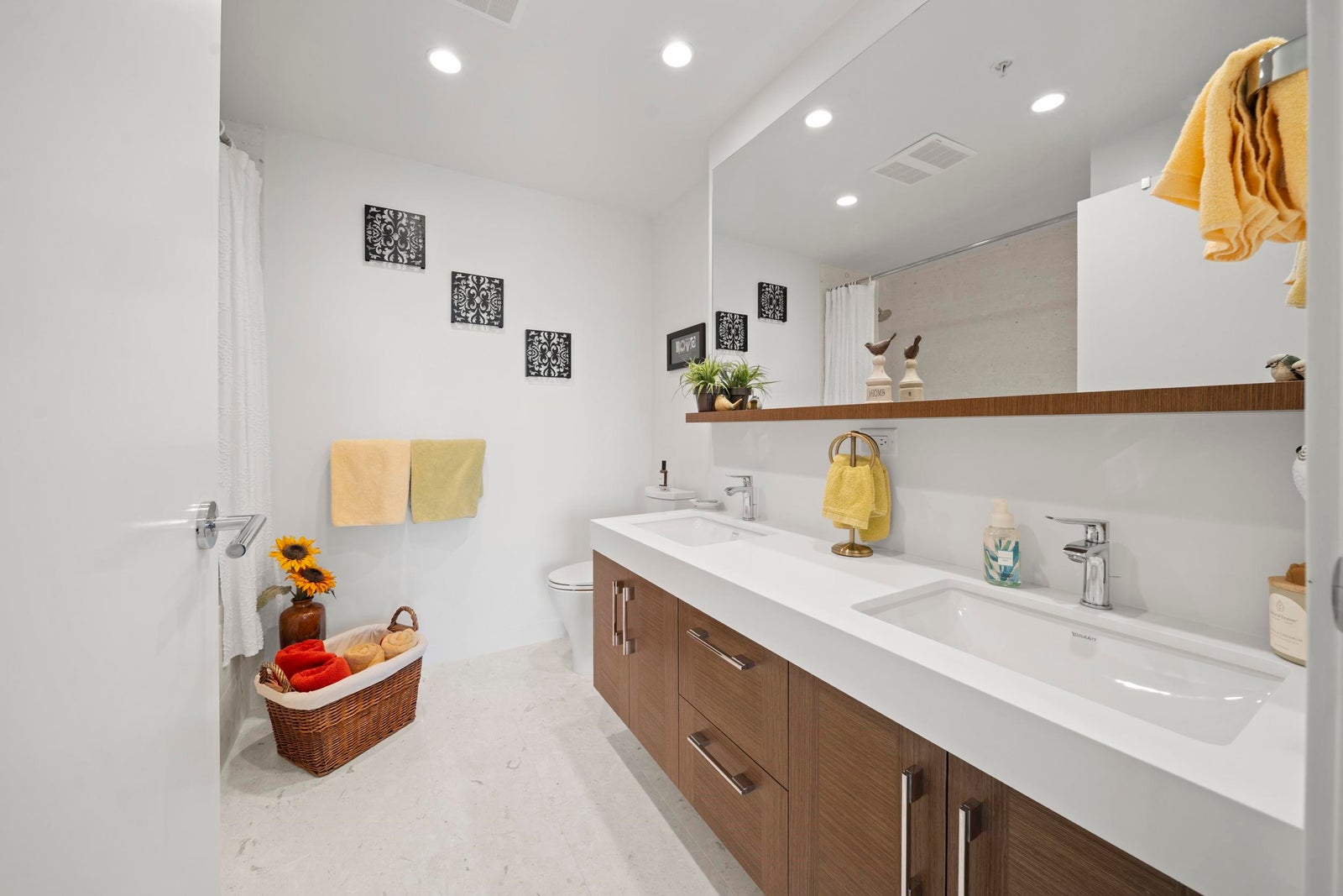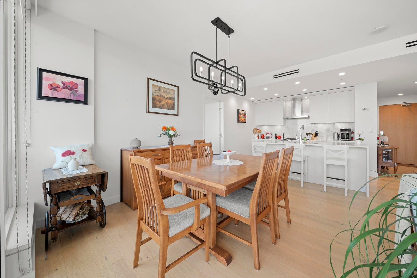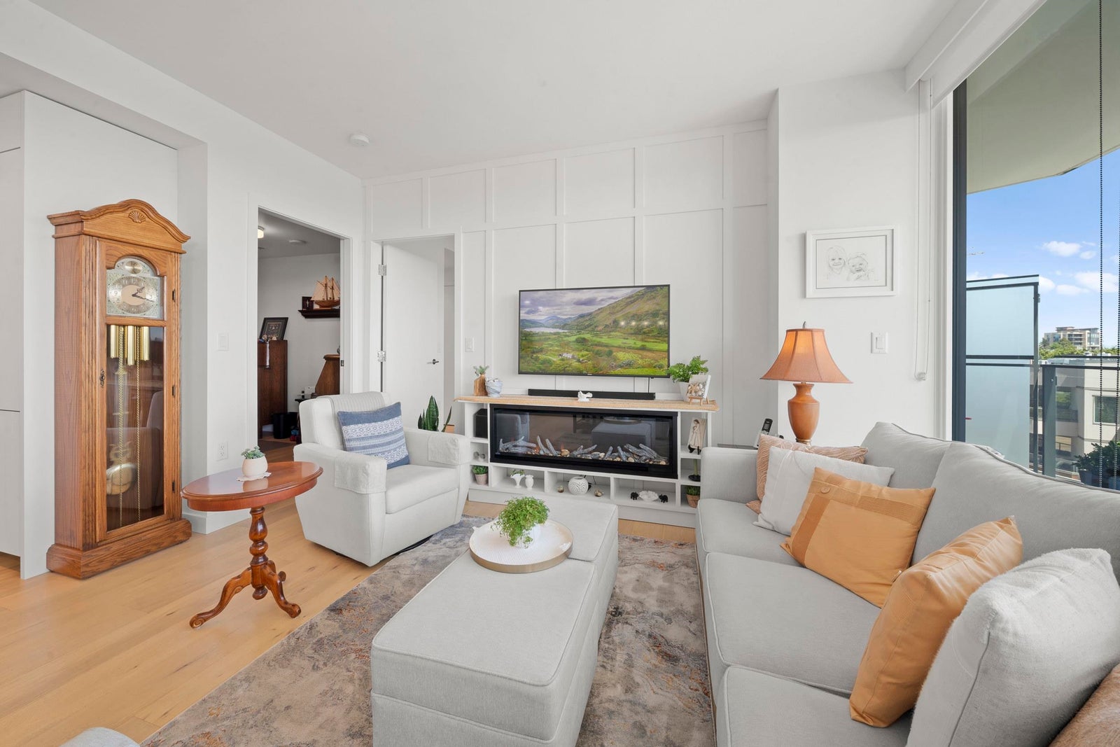 Experience refined coastal living in this stunning two-bedroom PLUS den, three-bathroom residence by Marcon. Enjoy sweeping Southeast, unobstructed views of Semiahmoo Bay, breathtaking sunrises, and Mount Baker vistas through expansive floor-to-ceiling windows. This beautifully appointed home features a Wolf gas range, Bosch appliances, built-in wine fridge, a large kitchen island, custom cabinetry, and elegant quartz countertops. Wide plank engineered hardwood floors throughout. A spacious in-suite storage room and side-by-side laundry with folding counter add everyday convenience. Both bedrooms offer spa-inspired ensuites with double vanities, floor-to-ceiling marble tile, primary incudes heated tile flooring. Ideally located just steps from shops, dining—luxury living at its finest.